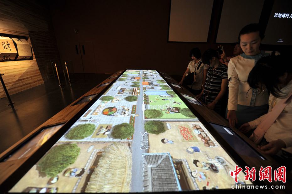 互动体验游戏——触摸大屏,观看动画。中新网记者 王红纲 摄
