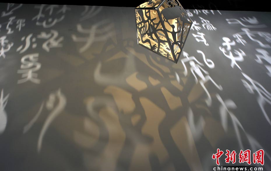 走廊灯光朦胧但很有文化意境。中新网记者 王红纲 摄