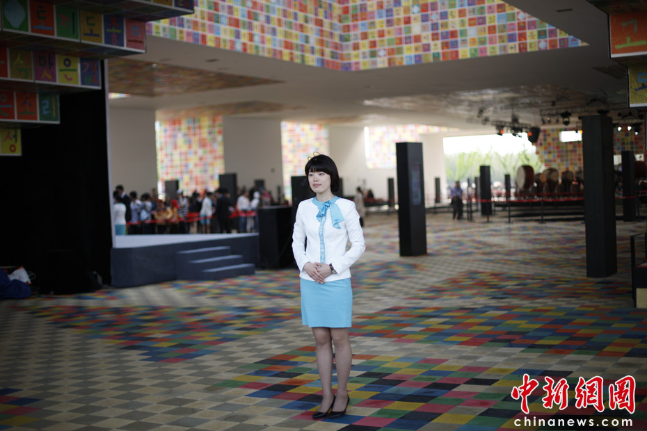 温柔美丽的韩国馆礼仪小姐。中新网记者 盛佳鹏 摄