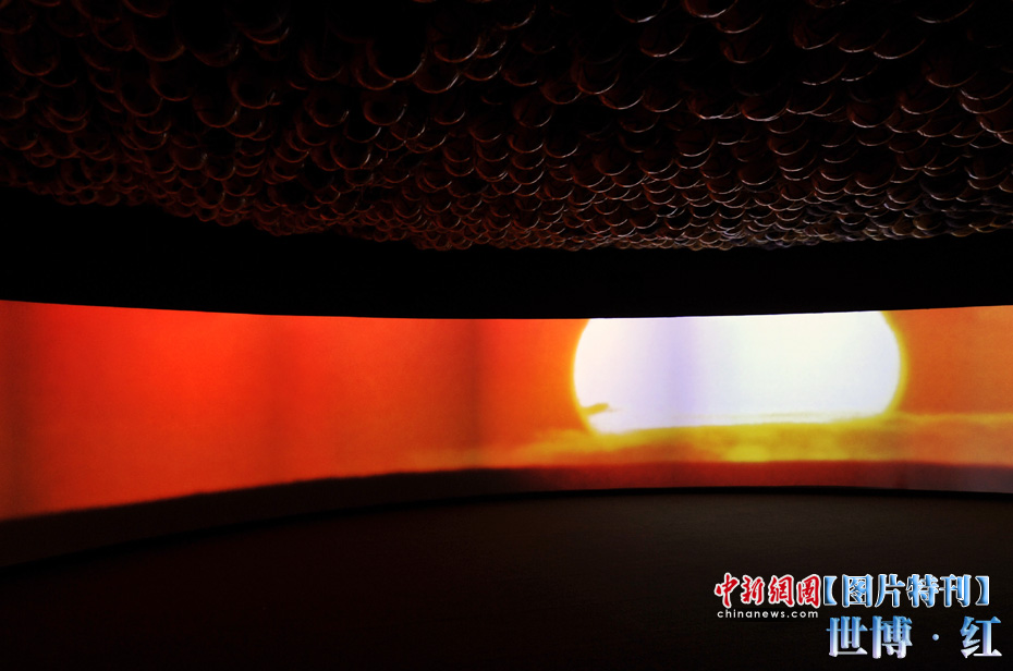 红色象征着热量与活力,红色也象征着兴奋与激情,在世博园区内游览,总会有一抹浓艳的红色闯入到记者镜头之中,让世博变得更加火辣。图为巴西馆的环形屏幕。中新社记者 盛佳鹏 摄
