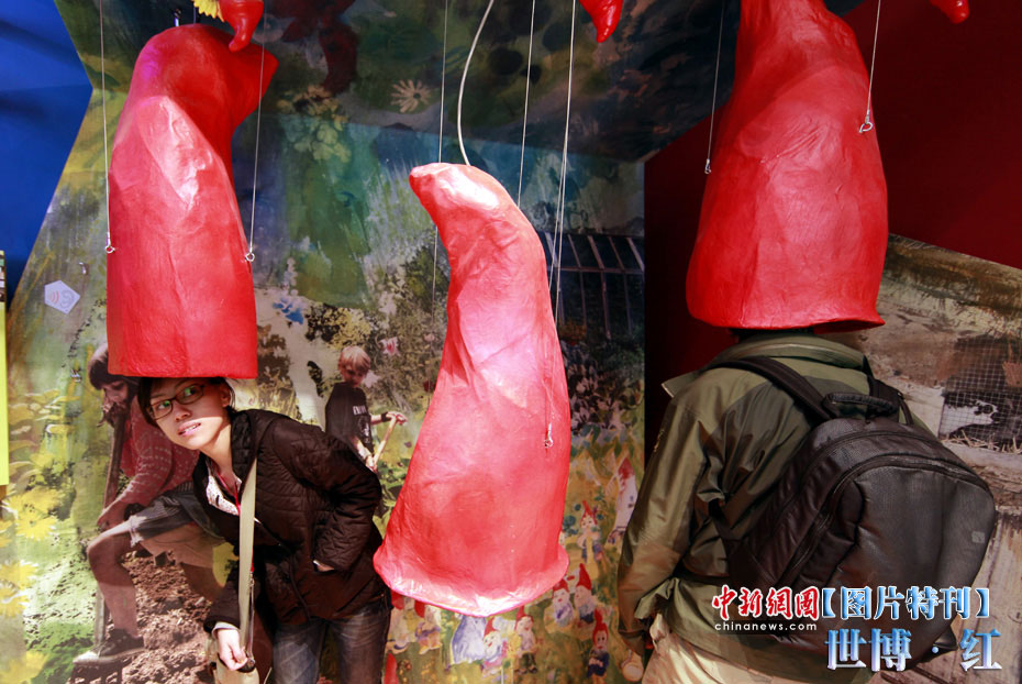 红色象征着热量与活力,红色也象征着兴奋与激情,在世博园区内游览,总会有一抹浓艳的红色闯入到记者镜头之中,让世博变得更加火辣。图为德国馆内的互动小游戏。中新社记者 盛佳鹏 摄