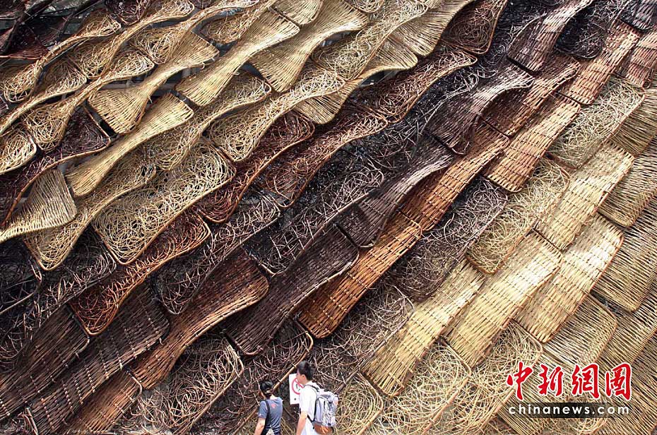 5月2日,上海世博会是第一个正式提出“低碳世博”理念的世博会,围绕着这样的理念,上海世博园区内的低碳元素比比皆是。图为西班牙馆外墙是用藤条材料组成,既环保又传统。中新社发 汤彦俊 摄