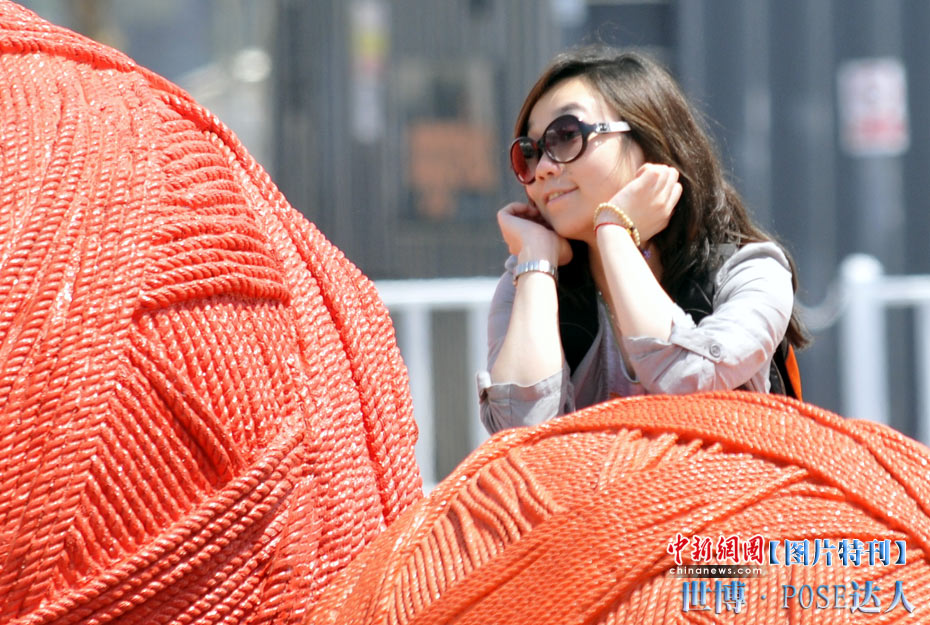 逛世博一定会拍照留念,摆一个漂亮有创意的pose尤为重要。面对着镜头,挺胸收腹翘臀,一个微笑,一个手势,秀出自己的活力。心中一定要默念:“我留下的不是照片,是心情!”。用手托腮,做花朵状是标准的可爱造型。中新网记者 王红纲 摄
