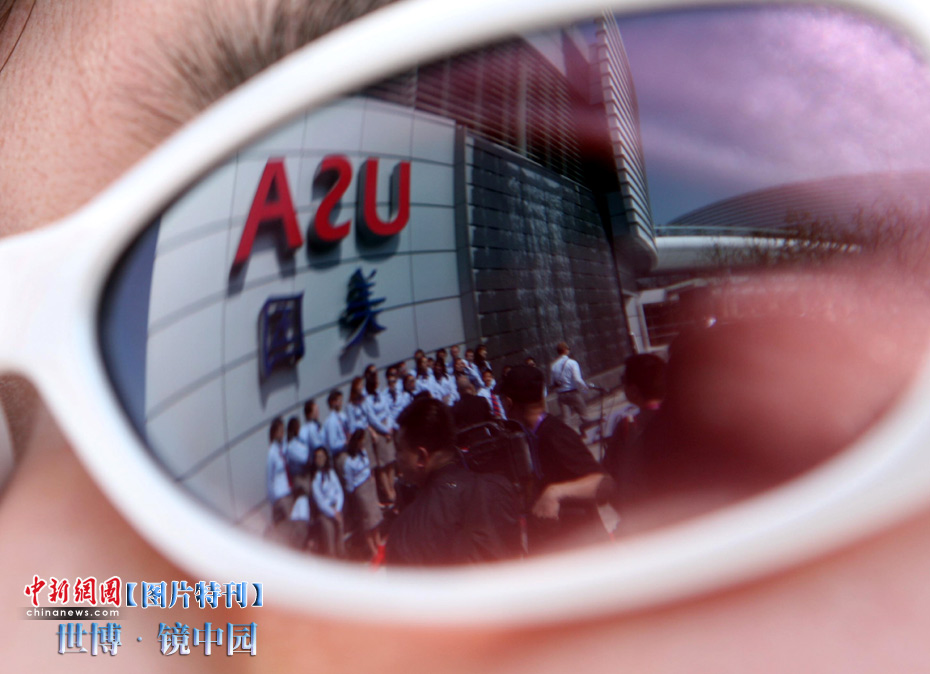 世博园开园3天,天气一直晴热,不少游客带起墨镜来遮挡刺目的阳光,从镜片的折射中看世博园,别有一番趣味。中新社记者 汤彦俊摄