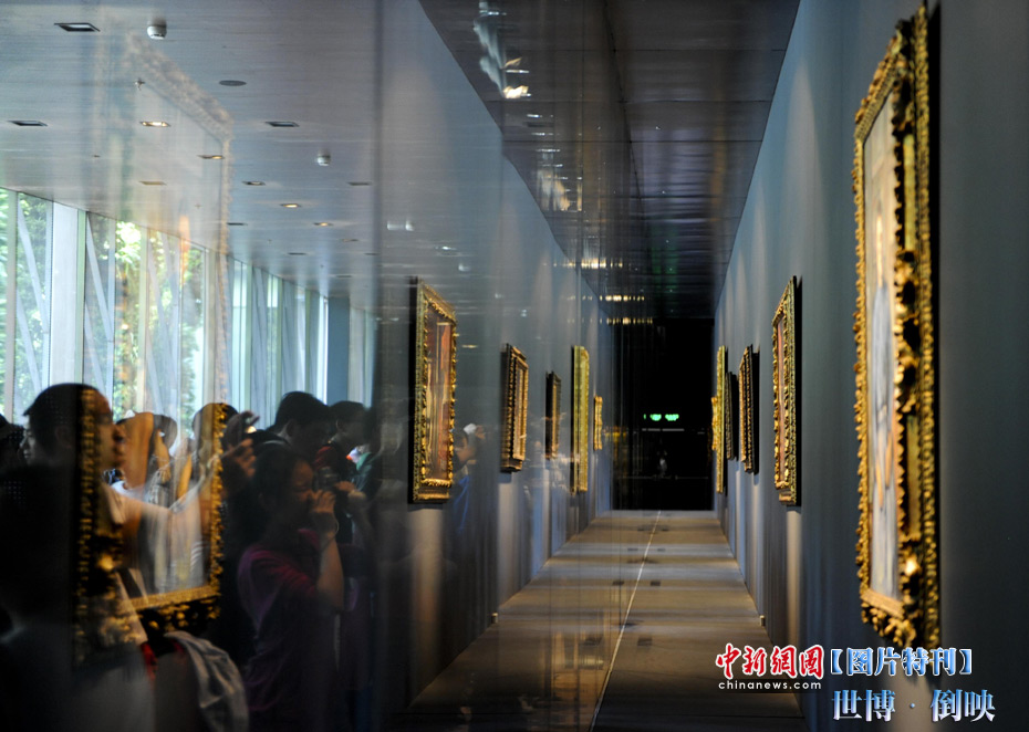 世博园法国馆内,游客拍摄着玻璃罩内的国宝油画。中新社记者 廖攀 摄