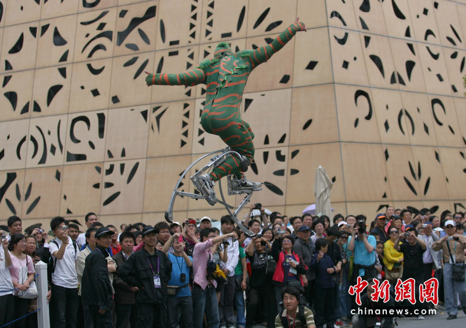 5月4日,上海世博会北京周花车巡游演员在世博园街头表演。当日,世博会北京周开幕。 中新社发 苏丹 摄