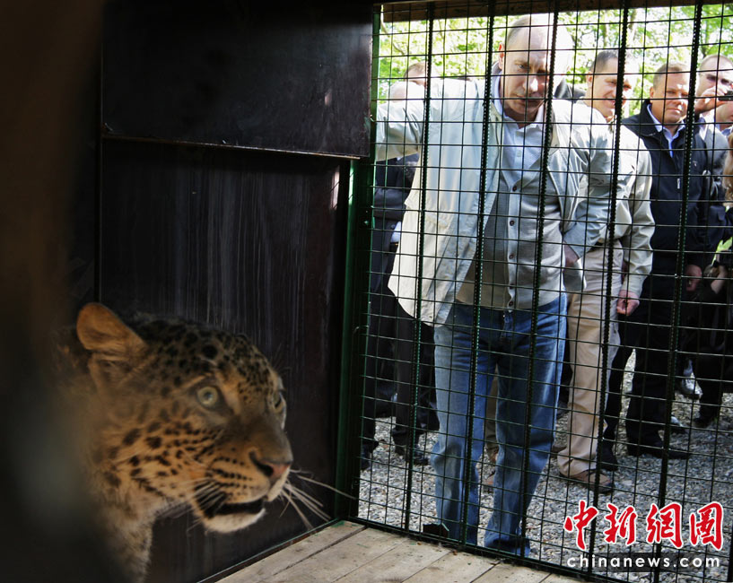 近日,俄罗斯总理普京来到2014年冬奥会举办地索契一家动物园,观看一头用东北虎换来的波斯豹。普京饶有兴致地观察了一会儿后,对这头刚刚到来、还有些认生的豹说:“别害怕,跑起来”,还向它做了个飞吻。此次从伊朗引进波斯母豹,是希望与本地的土库曼尼斯坦公豹交配,以挽救这一濒临灭绝的物种。