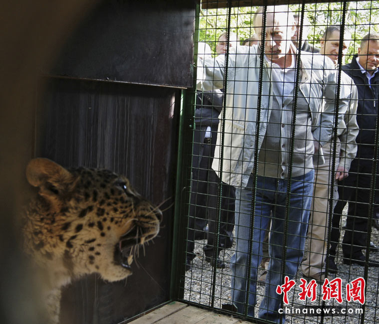 近日,俄罗斯总理普京来到2014年冬奥会举办地索契一家动物园,观看一头用东北虎换来的波斯豹。普京饶有兴致地观察了一会儿后,对这头刚刚到来、还有些认生的豹说:“别害怕,跑起来”,还向它做了个飞吻。此次从伊朗引进波斯母豹,是希望与本地的土库曼尼斯坦公豹交配,以挽救这一濒临灭绝的物种。