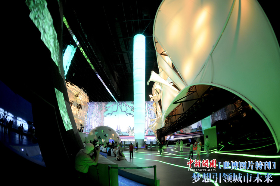 上海世博会城市未来馆位于E片区,馆内的展示以互动方式开始,邀请参观者畅想未来的城市,然后运用影片、书籍和雕塑等方式,体现历史上人们对未来城市的梦想、设计与实践,表明未来城市建立在今日挑战的基础上,并且畅想未来城市的各种可能,阐述推动人类进步永恒不变的精神元素。展望未来城市,一方面人类城市的种种现实、挑战和危机推动人们在思考中寻找城市的出路,另一方面人类不懈的创新能力和科技的飞速进步也把人们引向不可思议的未来城市。中新社记者 廖攀 摄