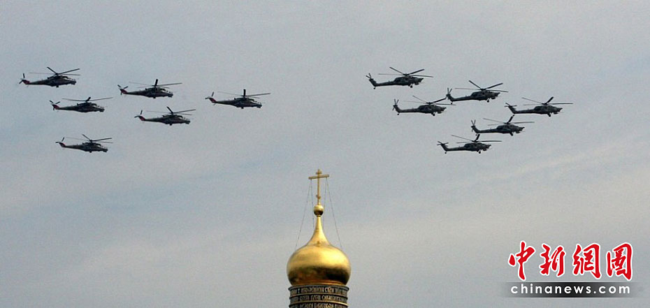 当地时间5月4日,在俄罗斯首都莫斯科,参加彩排的战机编队飞过红场上空。俄罗斯将于5月9日隆重纪念卫国战争胜利65周年。图片来源:中国新闻网