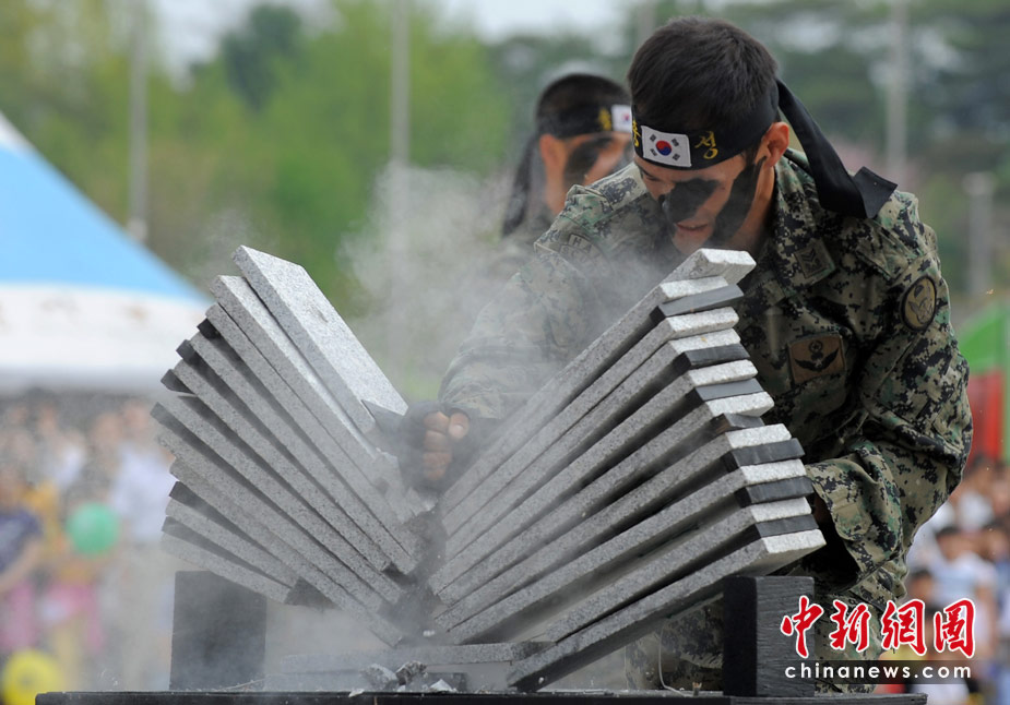 5月5日,韩国儿童节,韩国突击队员在国家战争博物馆为孩子们表演。