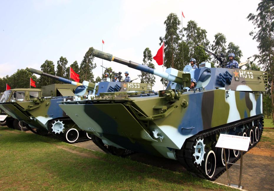 海军陆战队两栖突击车在庆典仪式上进行展示。图片来源:新华网 查春明摄