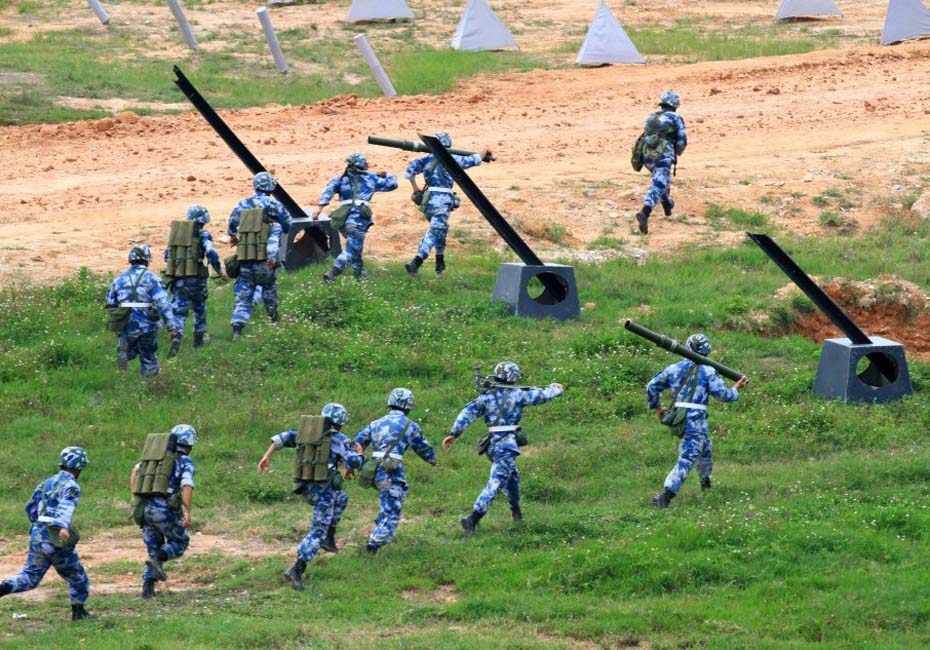 海军陆战队进行登陆作战实兵实弹演练。图片来源:新华网 查春明摄