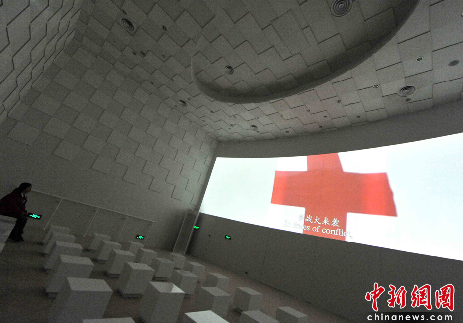 5月8日是上海世博会的红十字会和红新月会馆荣誉日,两会在简朴如医疗帐篷的馆里,运用声光电展示大量纪实图片,于大灾大难中显示救死扶伤的大爱,可歌可泣。这两个鲜红标志的人道救援组织,一百多年来遵循着坚定不移的宗旨——“经历战争与灾难的黑暗,我们更需要人道的光芒”。世界的未来,还将依靠它红色的光明,去驱散天灾人祸的阴影。中新社发 贾国荣 摄
