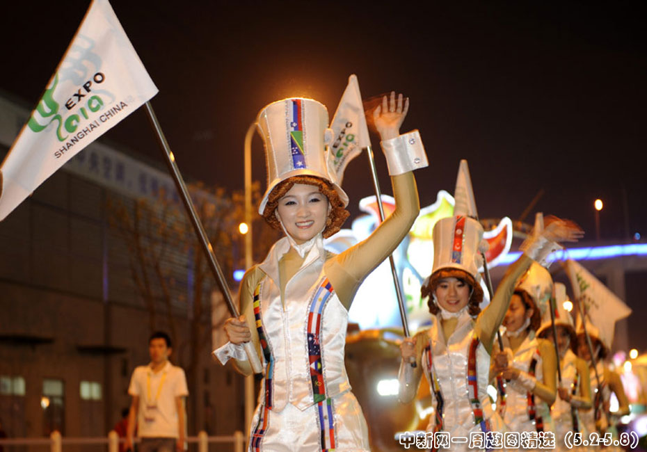 5月2日晚,由一辆辆充满异域风情的花车和身着盛装的表演者组成的“欢乐盛装大巡游”在世博园区举行。图片来源:中国新闻网>>点击观看详细内容