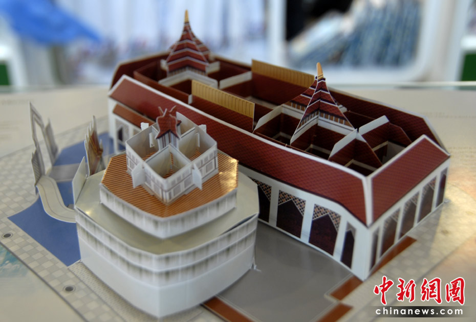 世博园区内的特许商品店里,折纸场馆惟妙惟肖,颇受游客的喜爱。图为泰国馆纸模型。中新网记者 吴歆 摄