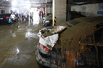 5月10日,广州中海康城地下停车场遭水浸的汽车终于重新出水。受5月7日的大雨影响,广州市东圃地区的中海康城的地下停车库发生严重的水浸。经过4天日夜不断地抽水,5月10号上午,地下车库里面的水终于干了。4天来一直轰鸣的水泵昨日终于停了下来。早晨7时许,众车主陆续来到车库,370多台车横七竖八排开,几只塘虱在淤泥里挪动着。在拖车出库的时候,不少车主泪流满面。