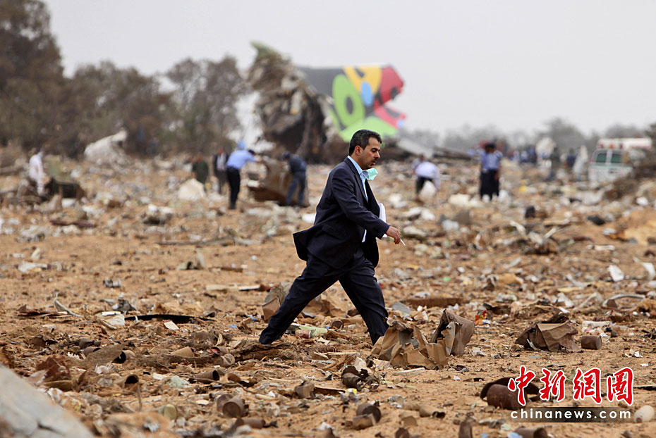 5月12日,一架从南非起飞的利比亚航班在利比亚首都的黎波里机场坠毁,机上103名乘客和机组人员遇难。图片来源:中国新闻网