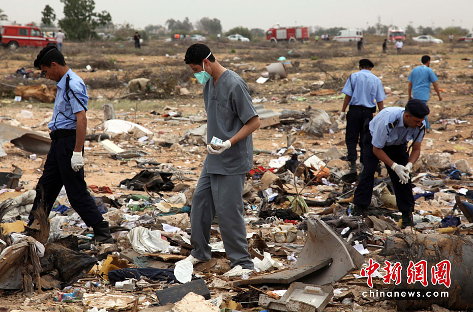 5月12日,一架从南非起飞的利比亚航班在利比亚首都的黎波里机场坠毁,机上103名乘客和机组人员遇难。图片来源:中国新闻网