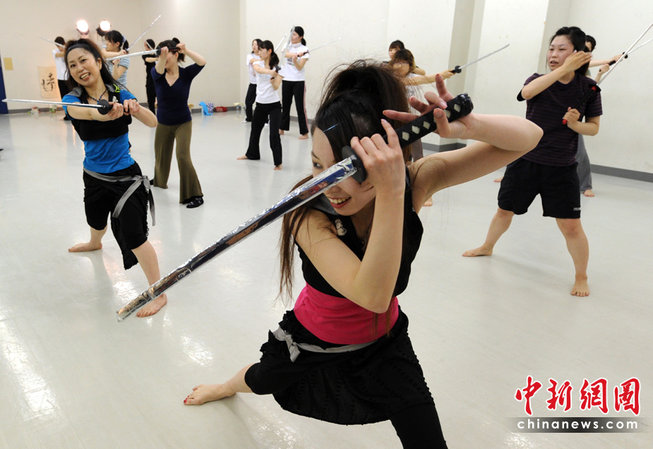 近日,在日本东京,众多白领女性学起了日本传统的武士刀,用来减压。