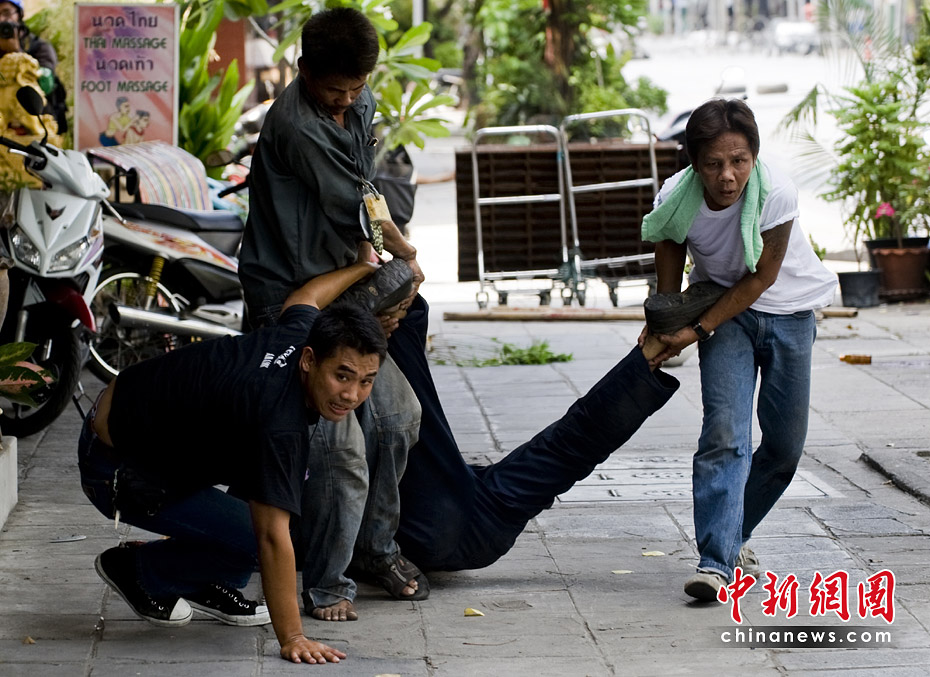 泰国政府军和反政府示威者5月14日深夜在曼谷爆发严重暴力冲突。曼谷紧急医疗机构15日称,截止当地时间早晨6时,冲突已导致16人死亡,至少141受伤,伤者中包括3名外国人。图片来源:中国新闻网