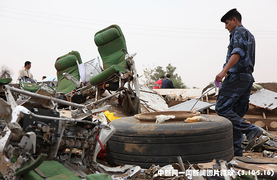 周三(12日),利比亚泛非航空公司(Afriqiyah Airways)的一架飞机在的黎波里机场着陆时坠毁。图为一名警察走在飞机残骸中。