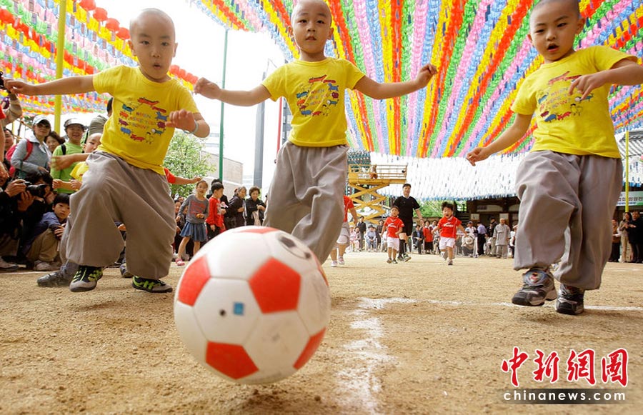 2010年5月15日,韩国首尔曹溪寺院举行了儿童足球赛,一群四五岁的孩子和小和尚参加了这场足球友谊赛。这场比赛是佛诞节活动的一部分,也是为了迎接2010世界杯足球赛的到来。Chung Sung-Jun