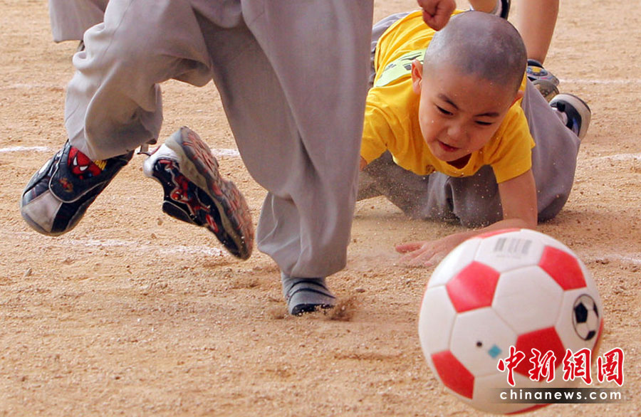 韩国寺院小和尚上演“少林足球”