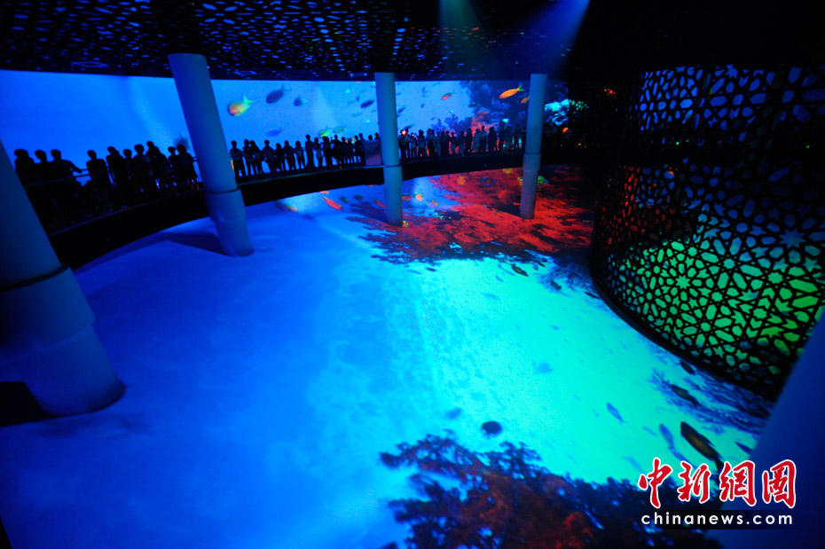 在世博会众多的展馆中,各类的大屏幕展示让参观者有如身临其境,也让游客们充分感受不同国家、不同地域的文化特色及先进科技理念,如幻似梦的屏幕光影也成为本次世博的最佳看点。沙特馆内的1600平方米的4块大屏幕相当于两个室内足球场,让参观者体验“人影合一”的神奇感受。参观者走上传送带缓缓向前,仿佛乘坐“神奇的飞毯”在沙漠中翱翔。中新社记者 廖攀 摄