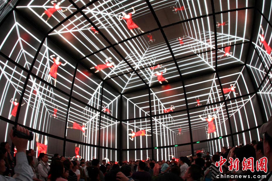 在世博会众多的展馆中,各类的大屏幕展示让参观者有如身临其境,也让游客们充分感受不同国家、不同地域的文化特色及先进科技理念,如幻似梦的屏幕光影也成为本次世博的最佳看点。图为国家电网馆。中新社记者 杜洋 摄