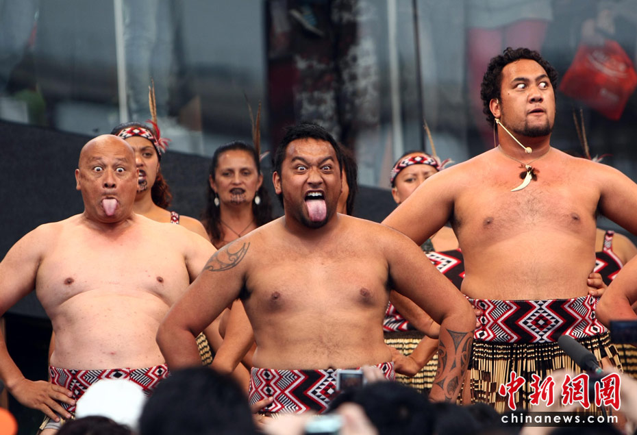 世博趣图:游客赤膊上阵学跳毛利舞