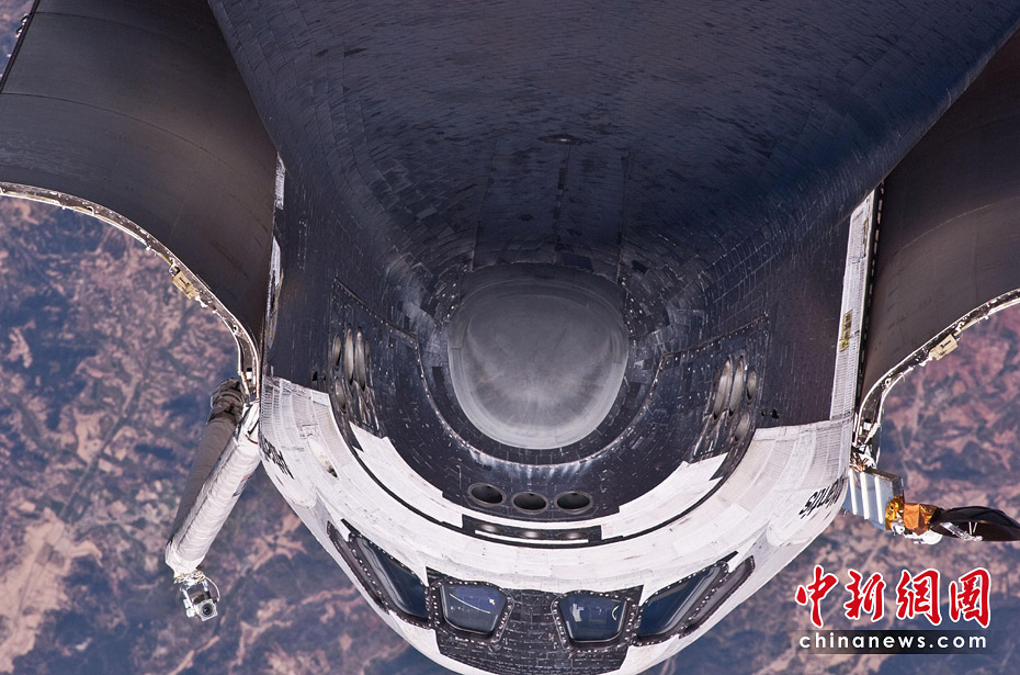 美国当地时间5月17日,“亚特兰蒂斯”号航天飞机宇航员加雷特·赖斯曼和史蒂夫·鲍恩进行了与国际空间站对接后的首次太空行走。图片来源:中国新闻网