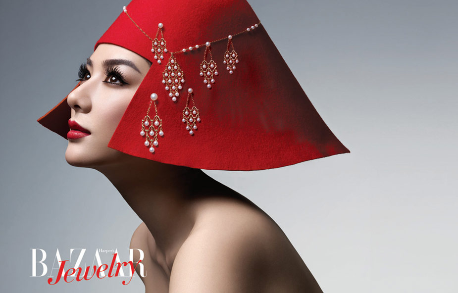 高高蓬起的发髻,剪裁流畅的礼服,还有颈上那串珍珠,没有刺眼的光芒,没有绚丽的色彩,典雅且华丽着。如此妆容会让你想起老上海的名媛佳丽,或是奥黛丽赫本的回眸一笑,那些隽永的美丽。然而当女主角变成黄奕,优雅之外更多的是惊喜。亮紫、浅棕、朱红,这些原本与经典无关的色彩,在她身上完美的契合,典雅之外的俏皮,精彩之后的永恒,也许,黄奕拍摄的不仅仅是中国顶级的一线杂志《芭莎珠宝》的封面大片,更是她别具一格的生活姿态。