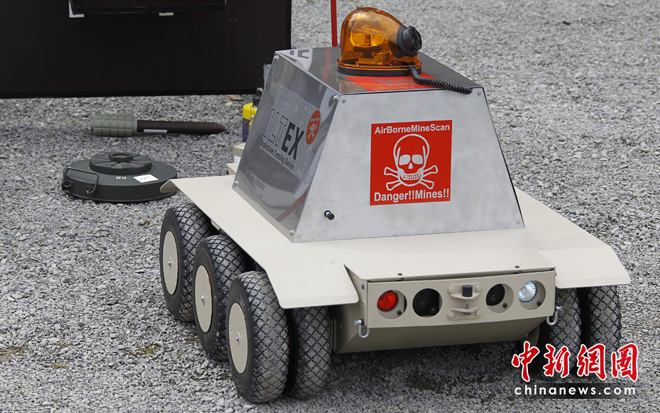 当地时间5月18日,德国南部哈默尔堡举行了欧洲军用机器人大赛。欧洲各国军用机器人在大赛上一展身手。图片来源:中国新闻网