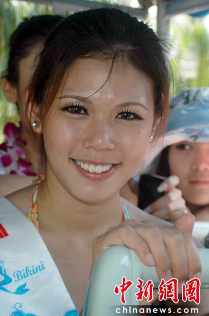 5月21日,海南三亚参加第35届国际比基尼小姐全球总决赛的64位各国佳丽开始了她们在三亚为期9天的时尚美丽之旅。当日,佳丽们前往著名的天涯海角、大小洞天等景区,拍摄外景,体验美丽的三亚热带风光,展现美丽风采。 图为马来西亚选手林熙玲,是一位祖籍福州的华人。中新社记者 尹海明 摄