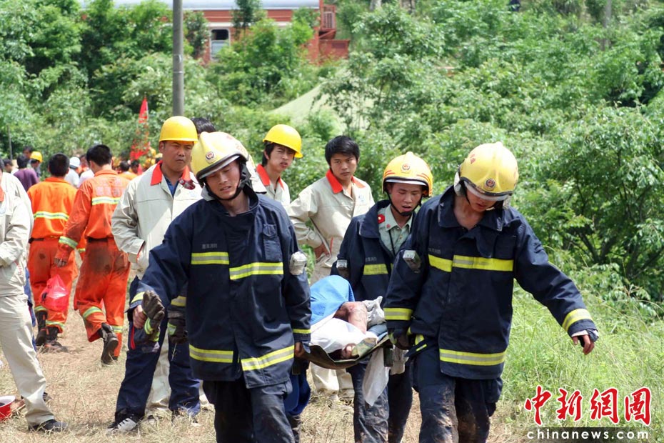 中新网东乡5月23日电(艾永全 何柳斌 刘占昆)23日下午14时,距离沪昆铁路客运列车脱线事发已经12小时,武警、消防、医护、交警、特警仍在事故现场紧急救援。 艾永全 摄