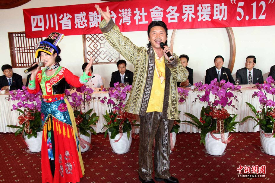 5月24日下午,“四川省感谢台湾社会各界援助‘5.12’地震灾区见面会”在台北举行,2名四川名歌手献唱,感谢台湾同胞的大爱。 中新网记者董会峰摄