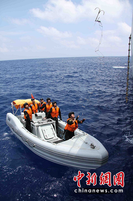 使用带锚勾的钢丝软梯攀爬。胡军 摄