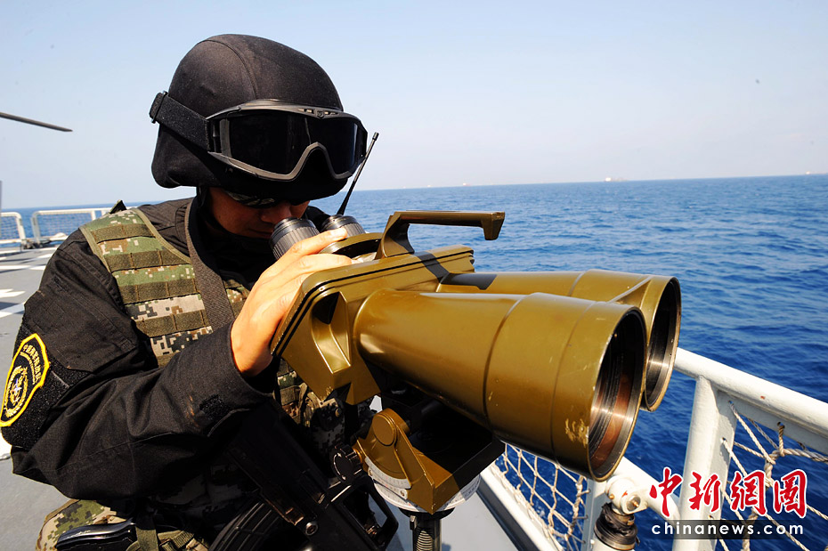 特战队员使用高倍望远镜观察瞭望。江山 摄