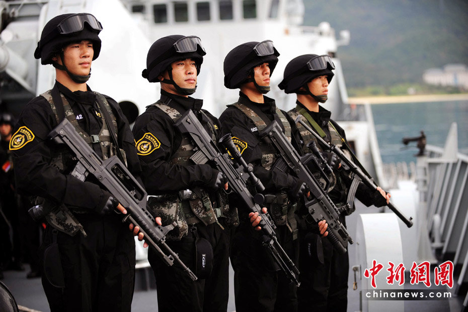 为了更好的进行威慑海盗,特战队员携带了多种轻武器。江山 摄