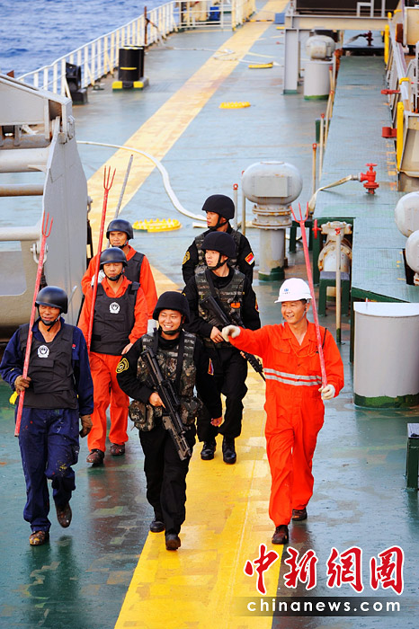 与特战队员一起巡逻,船员们轻松了许多。江山 摄