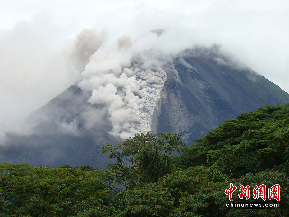 哥斯达黎加阿雷纳尔火山5月24日喷发。哥斯达黎加火山和地震观测专家说,目前阿雷纳尔火山爆发尚未造成人员伤亡,但当局已经疏散位于阿雷纳尔国家公园的游客以及当地居民。图片来源:中国新闻网
