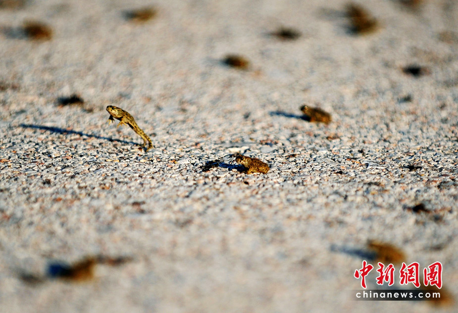 26日,希腊东北部地区的一条高速公路遭数百万只青蛙“占据”而被迫关闭了两个小时。希腊环保部门表示,这些青蛙可能只是在前往附近小湖找食物过程中“碰巧路过”高速公路。