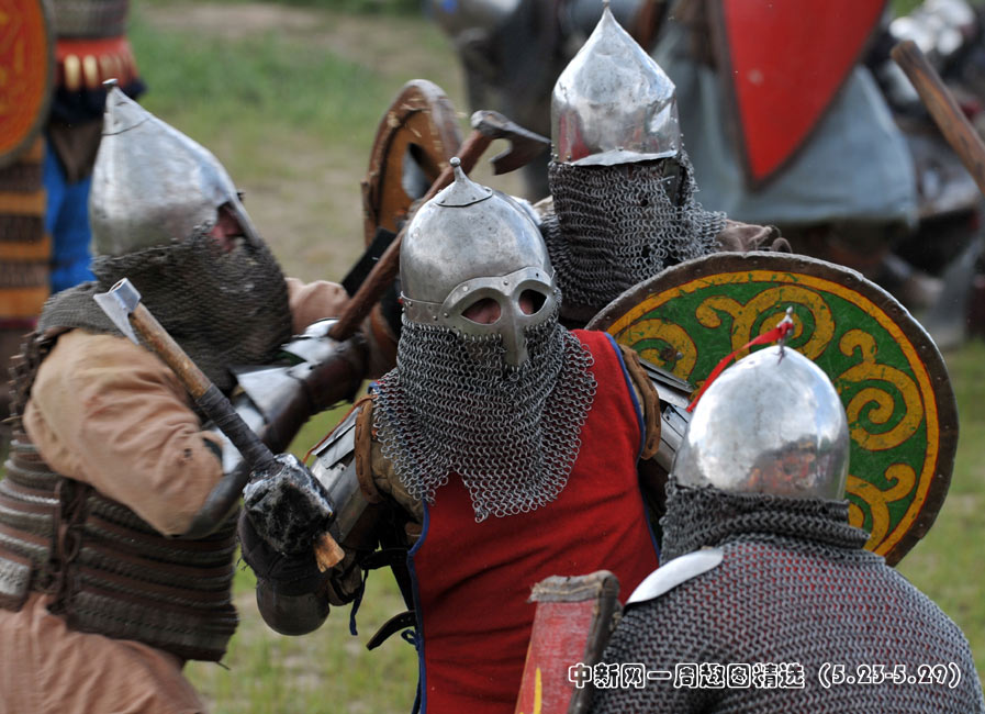 5月22日,在乌克兰基辅郊区举行的基辅罗斯节表演上,演出者再现了十三世纪的基辅罗斯战役历史场面。图片来源:中国新闻网>>点击观看详细内容