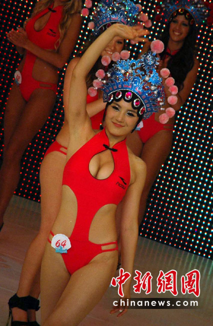 5月29日晚,第35届国际比基尼小姐全球总决赛在三亚“美丽之冠”落下帷幕,22岁的罗马尼亚选手Diana Irina Boanca摘得冠军。总决赛还评选出了四季小姐,18岁的中国选手赵茜获得“秋季小姐”,澳大利亚、委内瑞拉和拉脱维亚选手分别获得春、夏、冬季小姐。共有来自世界各地的64位佳丽参加了总决赛的角逐。当晚,佳丽们展示了各自国家或地区特色的民族服饰,用不同的方式展示了不同风格的比基尼“秀”,性感迷人。 中新社记者 尹海明摄