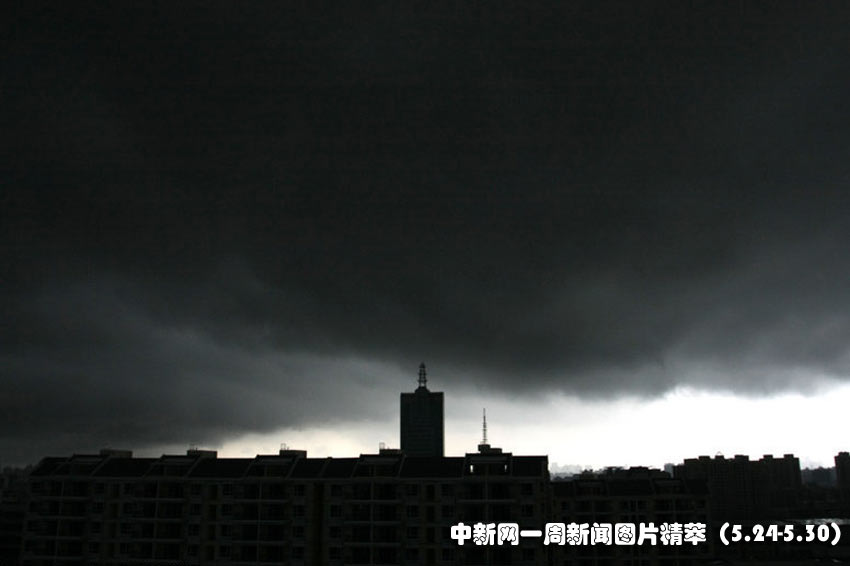 26(周三),一场暴风雨即将来临前的海南海口天空乌云翻滚,出现“乌云压城 城欲摧”景观。张茂 摄