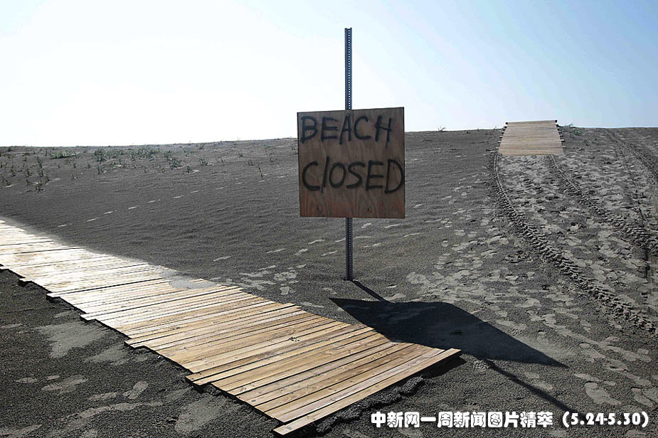 照片摄于美国路易斯安那州发现之岛,受墨西哥湾原油泄漏事故的影响,该岛的海滩已被关闭。