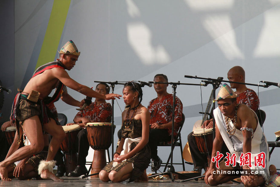 5月30日,马达加斯加肯特思米诺歌舞团在世博园非洲广场表演比洛传统仪式,逼真的神态、激情的表演,博得许多参观者称赞。当天是马达加斯加馆日,世博中心内举行了其国家馆日活动,马方和中方代表共同出席。中新社记者 殷春永 摄