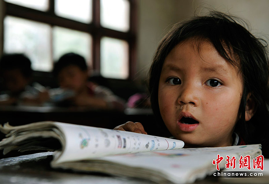 贵州省黔南州惠水县杨茂村房前小学。一名年仅4岁就被送往学校读书的一年级留守苗族娃娃。彭年/CFP