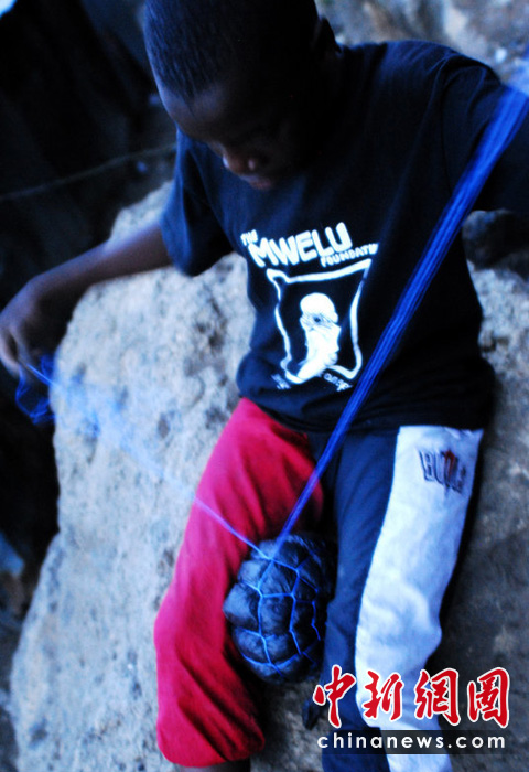 生活在肯尼亚首都内罗毕(Nairobi) Muthare难民营的小孩儿没有能力买足球、足球鞋,更别说专业足球队员穿的成套的球衣了。但是这些没有给他们对足球运动的喜爱产生任何影响。孩子们从当地的垃圾堆捡来塑料口袋和塑料碎片,自己动手做“足球”。 图片来源:CFP